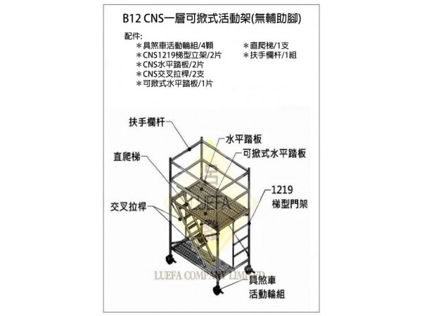 B12一層可掀式活動架(無輔助腳)(CNS材質)